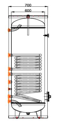 Két darab spirál kialakítású hőcserélővel szerelt, padlón álló indirekt használati meleg víz tartály. A két hőcserélős kialakításnak köszönhetően a tartály alkalmas két egymástól független hőforrás hőenergiájának, használati meleg víz előállítására való felhasználása. Alternatív lehetősége, az alsó és felső hőcserélő külső összekapcsolása, ezzel egy nagyobb hőcserélő felület kialakítása.