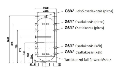 • Tartálytest teljes átmérője 470 mm