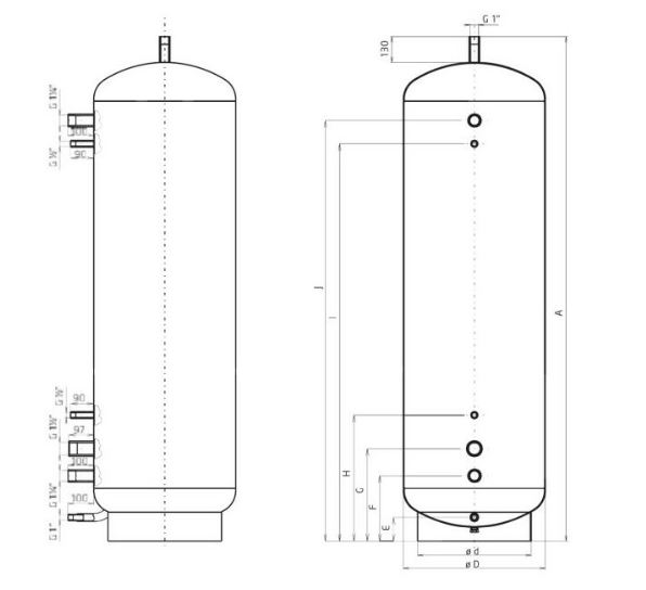 Tároló, Puffer tároló, Csőkígyó nélküli, 1000 liter felett