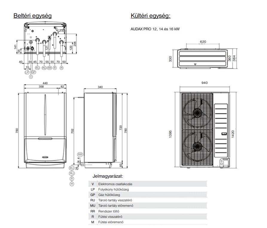 Kültéri egység magasság: 940mm