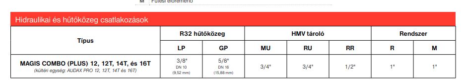 • előretöltött hűtőközeg: R32 az AUDAX PRO 4, 6 és 9, R410A az AUDAX PRO 12, 14 és 16 típusokban;