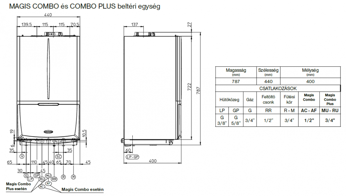 - Kondenzációs kazán magassága: 787 mm