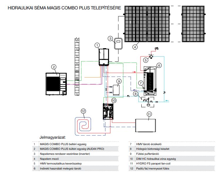 A MAGIS COMBO és MAGIS COMBO Plus egy hibrid rendszerű fűtő / hűtő berendezés használati melegvíz előállítással. A beltéri egység a hőszivattyú működéséhez szükséges hidraulikai berendezésen túl egy komplett kondenzációs kazánt is tartalmaz átfolyós vagy tárolós melegvíz készítéssel annak érdekében, hogy a pillanatnyi felhasználói igények a lehető legjobb hatékonysággal legyenek kiszolgálva. Kompakt méreteinek köszönhetően alig nagyobb egy átlagos fali gázkészüléknél, mégis képes a hőszivattyús technikát a kondenzációs kazánnal ötvözve kiemelkedően jó rendszerhatásfokot és ezáltal nagyon alacsony üzemeltetési költségeket biztosítani.