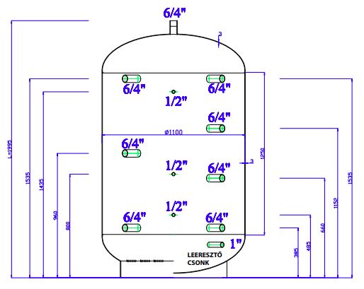 • Átmérő szigeteléssel(külső átmérő):1300mm