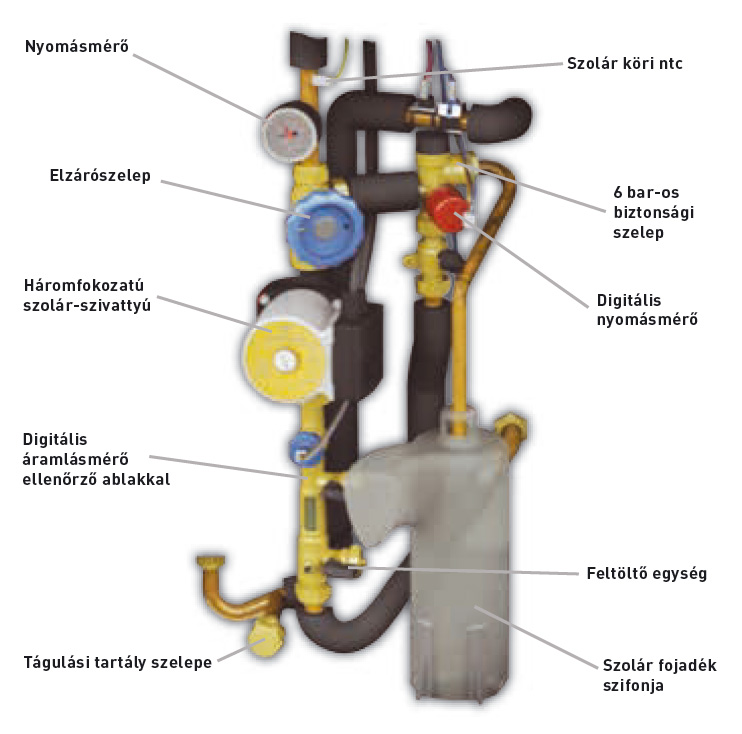 A szolárköri hirdaulikus egységek mindegyike a tároló előtt került elhelyezésre.